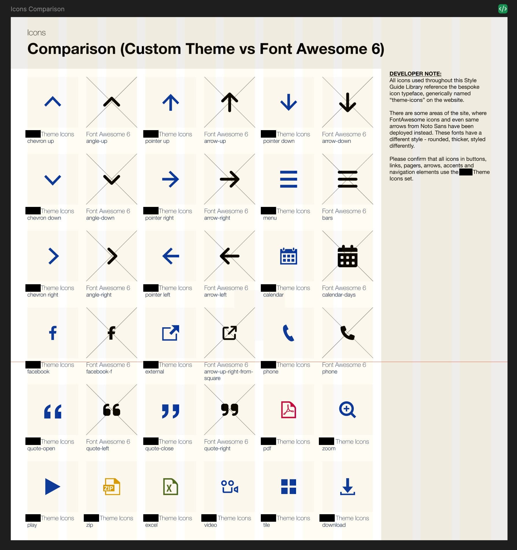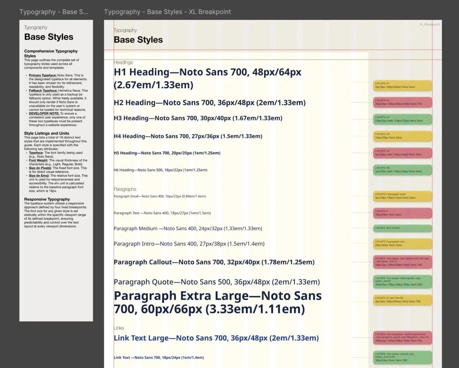 Eighteen responsive text styles were defined using Noto Sans and mapped with em units to support accessibility at scale. A custom SVG icon library was also implemented to reduce reliance on generic icon sets and improve rendering performance across the platform.