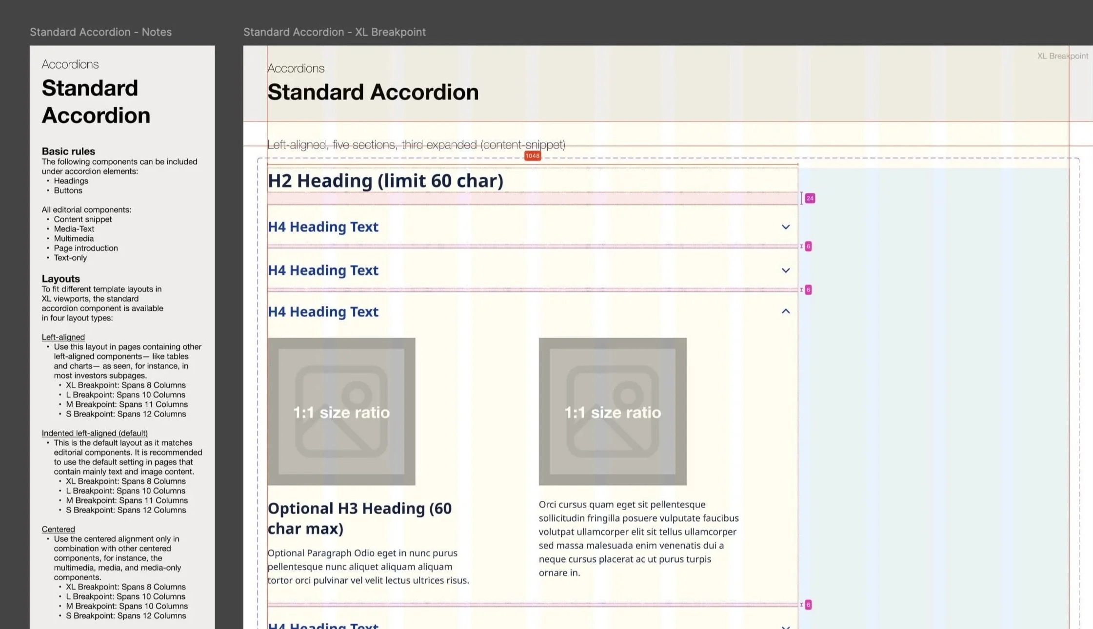 Detailed functional specifications were created for interactive modules, including accordions, galleries, and carousels. These specifications defined behaviors across all four breakpoints, enabling developers to implement complex interactions accurately and efficiently.