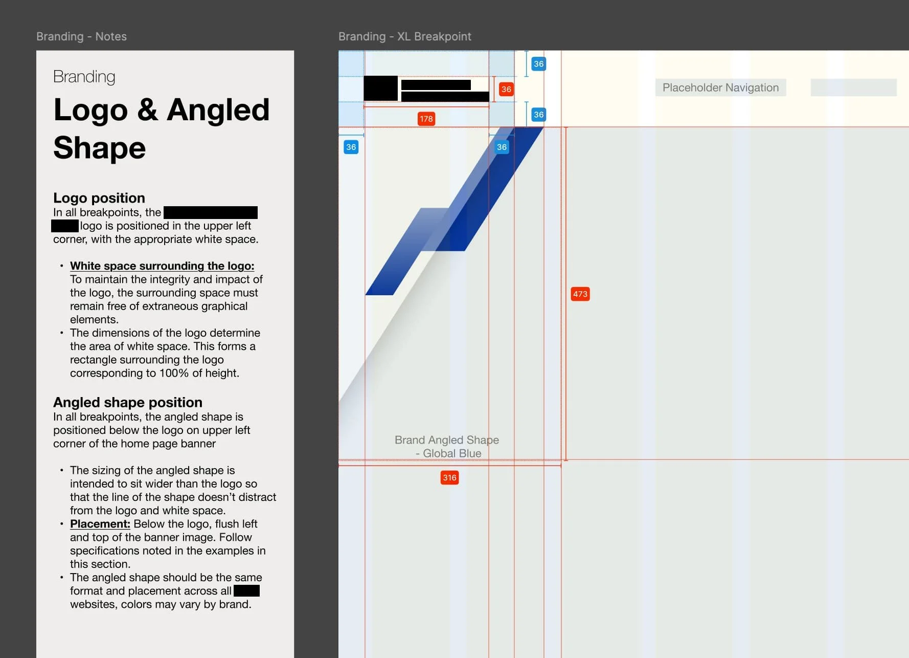Static brand guidelines were translated into a living digital system, defining spatial rules and responsive behaviors for the primary logo and signature angled shape across all viewport sizes, helping protect brand consistency globally.